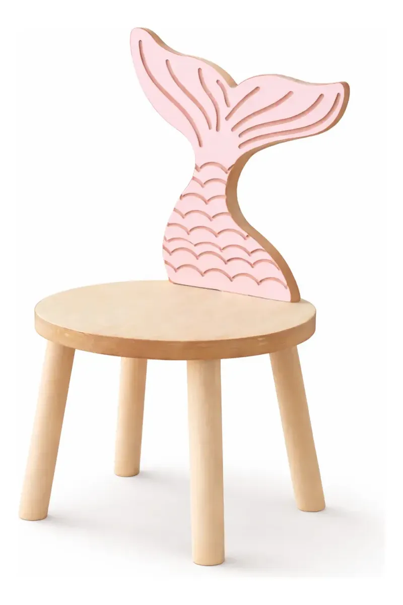 Cadeira modelo temático fundo do mar - Sereia. Confeccionado em MDF com pés na madeira natural. Suporta aprox 60 kg. Altura da cadeira: 27 cm com assento. Garantia de fábrica: 2 meses