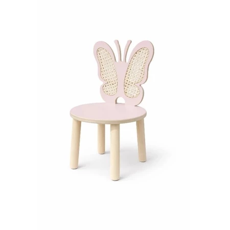 Cadeira modelo borboleta em MDF rosa e detalhes em palha indiana.