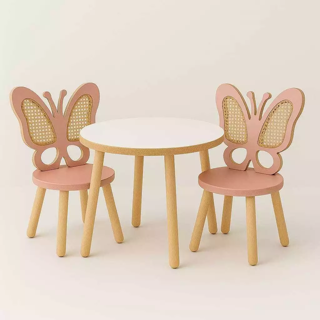 Mesa com 2 cadeiras modelo borboleta com detalhes em talagarça